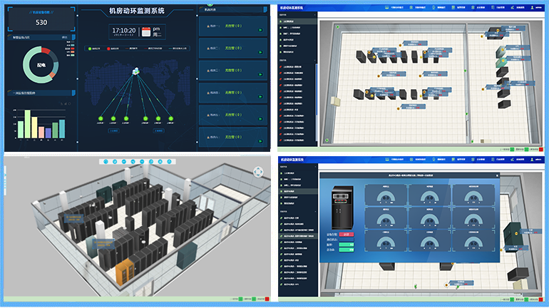 實(shí)時(shí)3D、2D場(chǎng)景顯示,多種視角、多種信息層,展示報(bào)警狀態(tài)、位置、布線路由、機(jī)柜空間利用率、溫度熱力圖、巡航模式管理等,畫面任意旋轉(zhuǎn)、縮放。